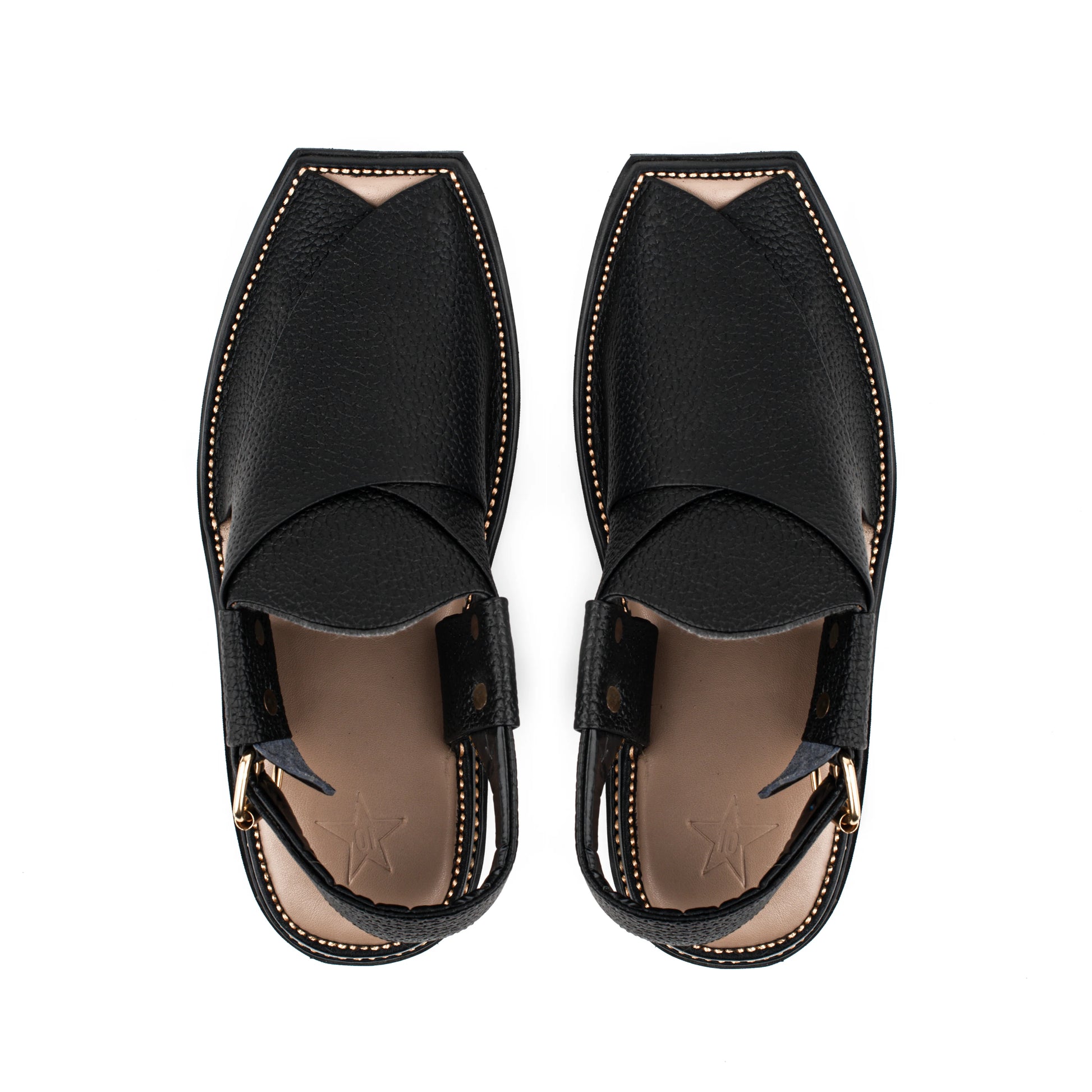 Peshawari Chappals are a traditional favorite that pairs well with modern looks as well. These shoes are crafted with high-quality jacquard and genuine Leather, which assures their endurance. The shoes include conventional details and a square toe form, as well as a seamless and padded sole.